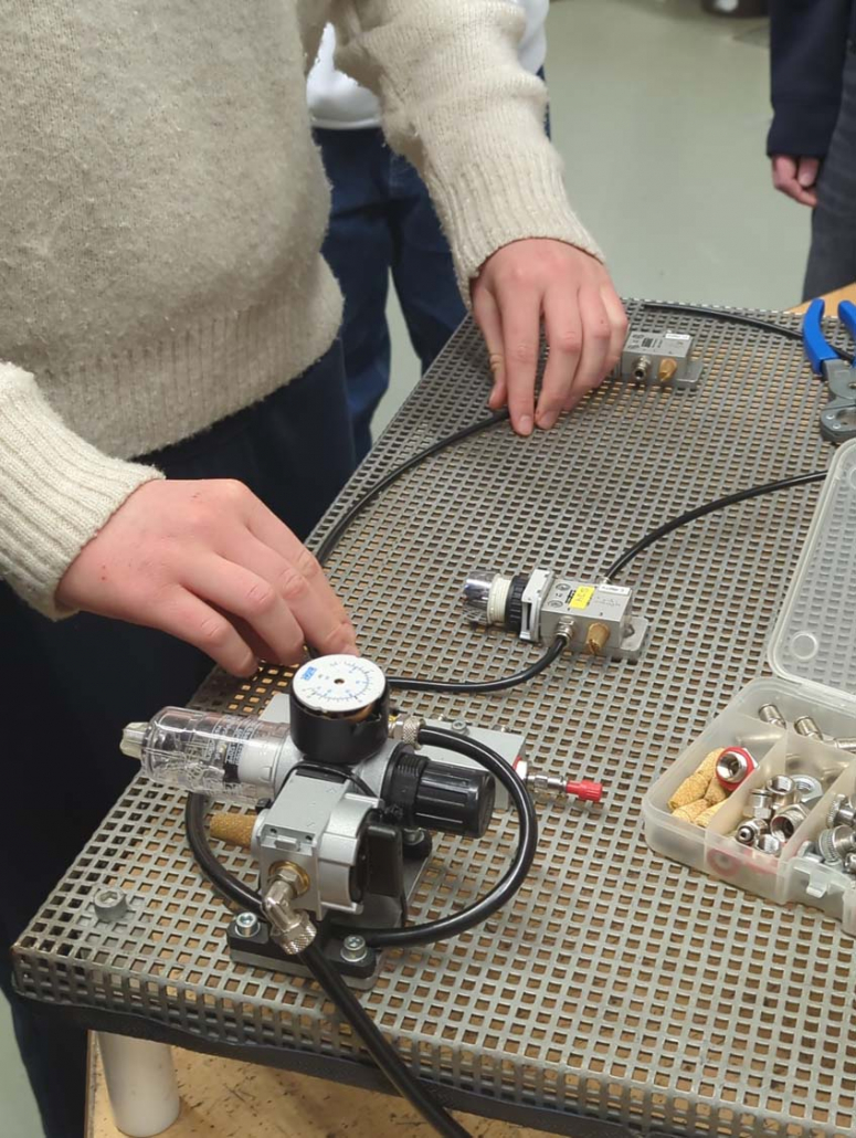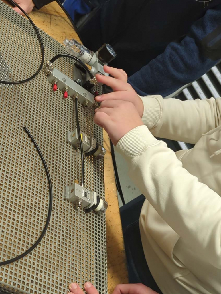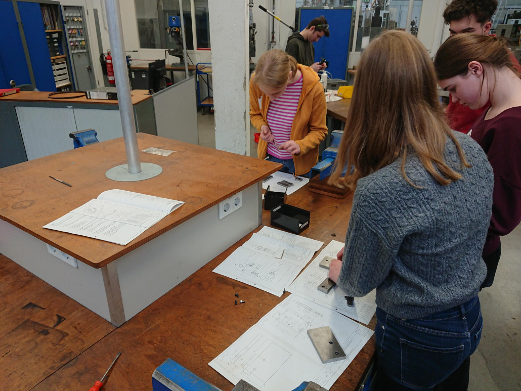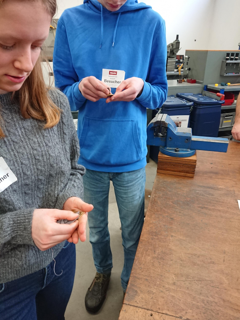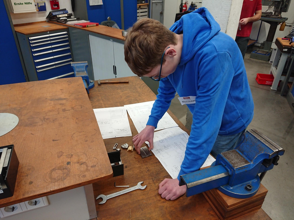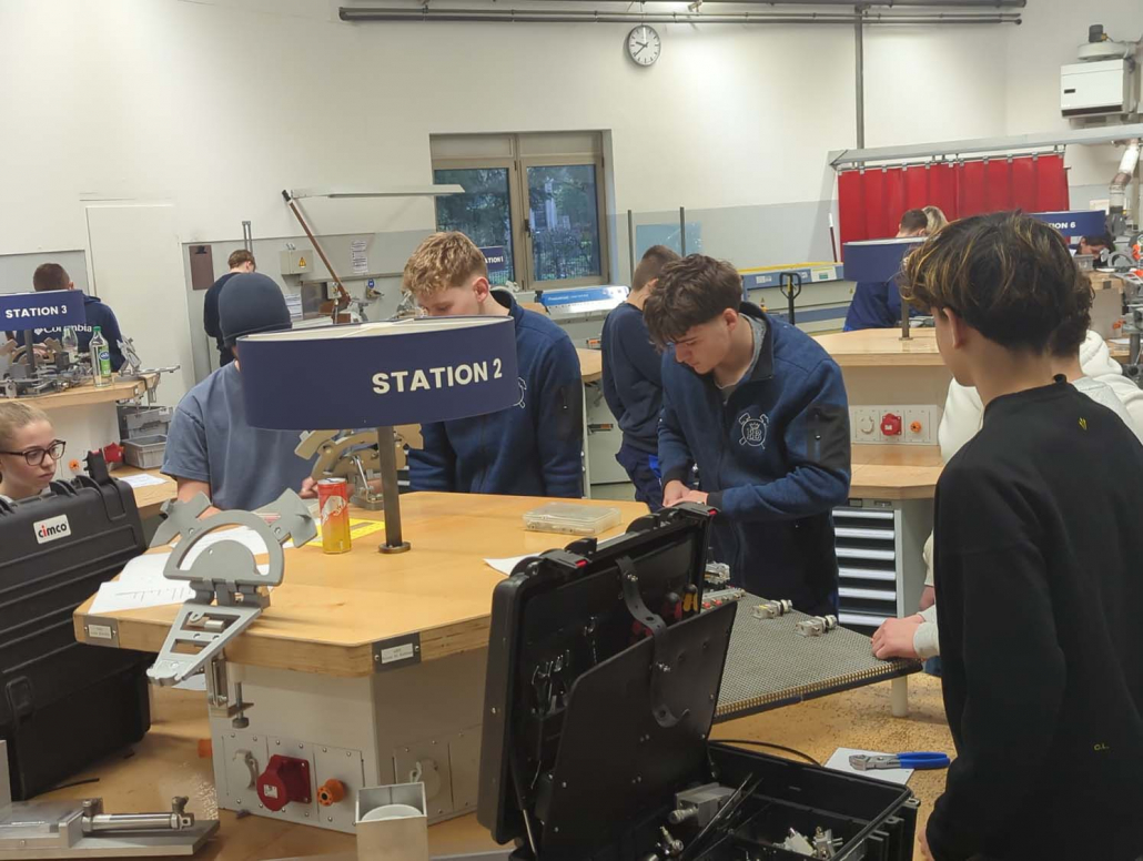 Vor Ort zeigte sich, wie vielfältig Arbeitsfelder in Mathematik, Informatik, Naturwissenschaften und Technik sein können. Nach ersten Einblicken in Abläufe und Arbeitsbereiche ging es für die Jugendlichen schnell ins praktische Arbeiten. Elektrische Schaltungen wurden nach Plan aufgebaut, Drahtspulen in Elektromotoren eingefädelt und Anlagen fachgerecht verdrahtet. Einige Gruppen sammelten Erfahrungen beim Schweißen, andere setzten sich mit pneumatischen Steuerungen auseinander oder brachten Schulungsroboter in Bewegung.