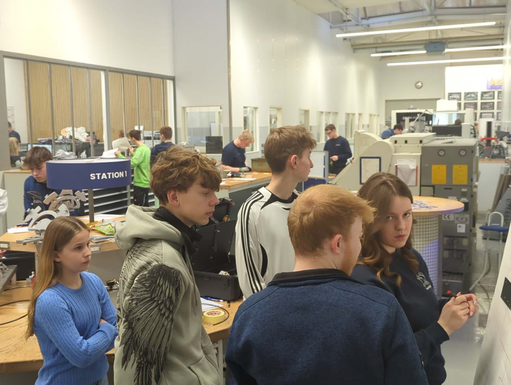 Begleitet wurden viele Gruppen von Auszubildenden der Betriebe. Diese standen den Jugendlichen als direkte Ansprechpartner zur Seite, erklärten Arbeitsabläufe verständlich und berichteten aus eigener Erfahrung über ihre Ausbildung. So entstand ein Austausch auf Augenhöhe, der Berufe aus dem MINT-Bereich nahbar und realistisch erscheinen ließ.