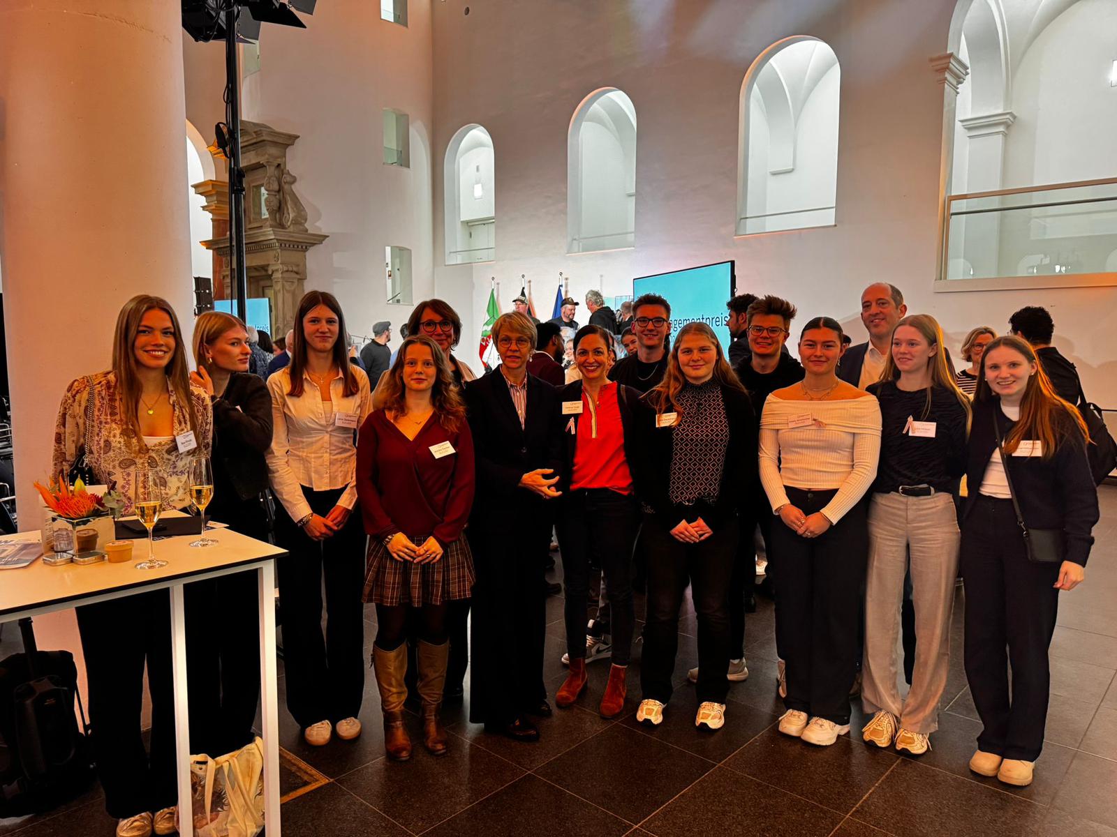 Den Höhepunkt des Abends bildete die Verleihung der Engagementpreise NRW 2025 – wir hatten uns insbesondere beim Sonderpreis des Ministeriums für Schule und Bildung gute Chancen ausgerechnet, die Wahl fiel aber leider nicht auf das Projekt des Laurentianum. Die Enttäuschung verflog jedoch schnell, da mit dem ausgezeichneten Projekt inteGREATor ein wunderbares Engagement verdient ausgewählt worden war.