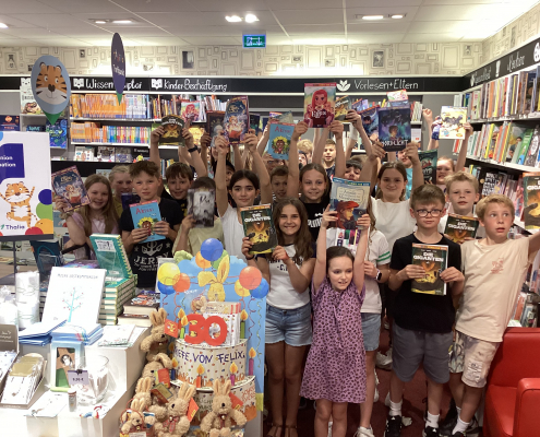 Zum Welttag des Buches besuchten die Klassen 5 eine Buchhandlung und stöberten mit viel Freude in den Büchern und Comics.
