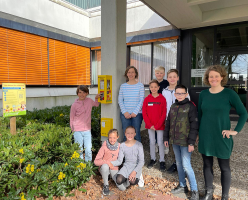 Warendorf hat jetzt einen Bienenfutterautomaten am Gymnasium Laurentianum. Statt Kaugummis können Bürger*innen dort zukünftig Kapseln mit Blühmischungen erwerben. Damit möchte die Schule in Warendorf die Nahrungsvielfalt für Bestäuber verbessern und auf den Schutz lokaler biologischer Vielfalt aufmerksam machen.