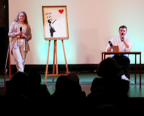 Die ganze Woche hatte die Q2 gemeinsam die Bühne aufgebaut und das PZ vorbereitet. Gespannt warteten die kommenden Abiturientinnen und Abiturienten darauf, wie viel Publikum der Einladung zu ihrem Kulturabend folgen würden. Kurz vor 18 Uhr waren dann alle Stühle besetzt und endlich konnte es losgehen.