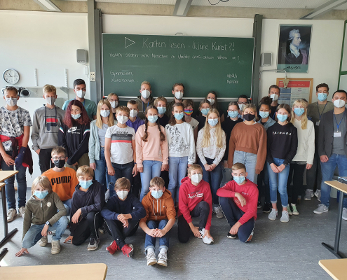 Gemeinsam mit Studierenden des Instituts für Didaktik der Geographie (IfDG) der WWU Münster erlebten die Schülerinnen und Schüler der Klasse 7C einen besonderen Einblick in das geographische Arbeiten mit Karten.