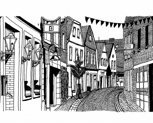 Wegen der Corona-Pandemie zum "Homeoffice" verdonnert, widmeten sich die Schülerinnen und Schüler der Q1 der Kunstkurse von Tiemo Grauert der Aufgabe, sich grafisch und aus subjektiver Sicht mit der Stadtkultur auseinander zu setzen. Was gibt es da Schöneres, als in Gedanken oder ganz real mit seinem Skizzenheft durch Warendorf zu spazieren und der Architektur Warendorfs auf künstlerischer Ebene zu begegnen.