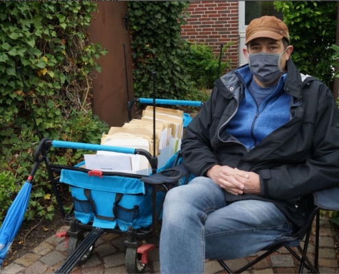 Der stellvertretende Schulleiter Malte Prigge gab den angehenden Abiturientinnen und Abiturienten ihr Abi-Vorklausuren am "Drive-In" unter freiem Himmel aus und vermied so aus Infektionsschutzgründen ein Zusammentreffen mehrerer Personen vor dem Sekretariat.