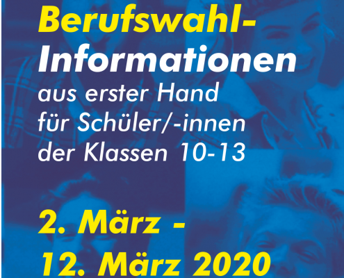Hier ist der korrigierte Flyer mit den Themen, Orten und Terminen der Berufsinformationstage 2020 eingestellt.