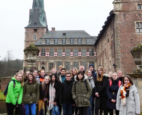 Am vergangenen Donnerstag machte sich zum 3. Mal eine Gruppe von 10 Schülerinnen und Schülern des Gymnasium Laurentianum, begleitet von der Biologielehrerin Martina Beuting, auf den Weg nach Raesfeld um dort an dem binationalen Projekt „MINTLAB auf Schlössern – in kastelen“ teilzunehmen.