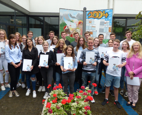 33 Schülerinnen und Schüler der Q1 erwarben im Rahmen ihrer Teilnahme am Projektkurs Wirtschaftsenglisch das IHK-Sprachenzertifikat. Das Laurentianum bietet mit dieser Qualifikationsmaßnahme - als einziges Gymnasium im Kreis Warendorf- eine wertwolle Qualifikation im Bereich Fremdsprachen. Die Schülerinnen und Schüler sind zu Recht stolz auf diese Leistung. Schulleiterin Marlis Ermer und die beiden Lehrerinnen Ursula Petry beglückwünschen zu diesem Erfolg.