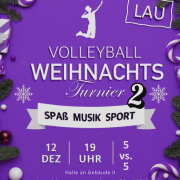Am 12.09.25 steht das 2. Weihnachts-Volleyballturnier an, bei dem Schülerinnen und Schüler und Lehrkräfte in verschiedenen Teams gegeneinander antreten.
